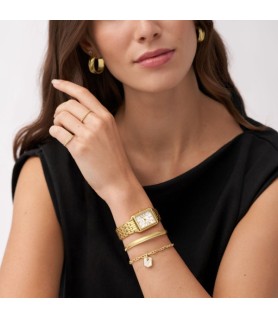 Rellotge Fossil de polsera per a dona. Caixa de 23x30mm d'acer xapat en or. 5 ATM d'impermeabilitat. Garantia de 2 anys