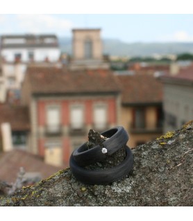 Anillo de carbono con diamante de 0.03ct de la marca Titan Factory. Mide 4.3mm de ancho x 2.7mm de grosor. Antialérgico, muy ligero y resistente.
